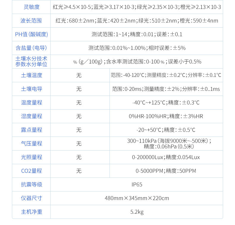 11.土壤水分技術(shù)參數(shù)水分單位:﹪(g/100g);含水率測試范圍:0-100﹪;誤差小于0.5%