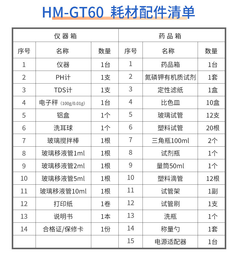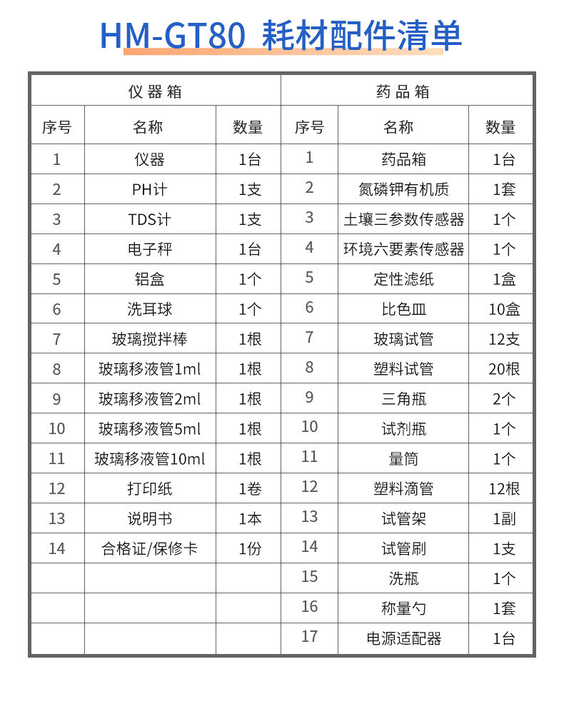 | 2 | PH計(jì) | 1支 | 2 | 氮磷鉀有機(jī)質(zhì)試劑 | 1套 |