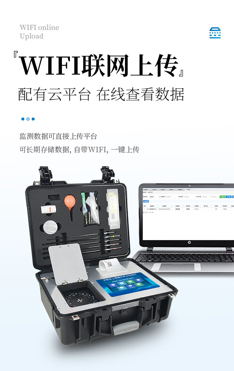 5、儀器標(biāo)配wifi無線上傳、4G聯(lián)網(wǎng)傳輸、GPRS無線遠(yuǎn)傳,快速上傳數(shù)據(jù)。