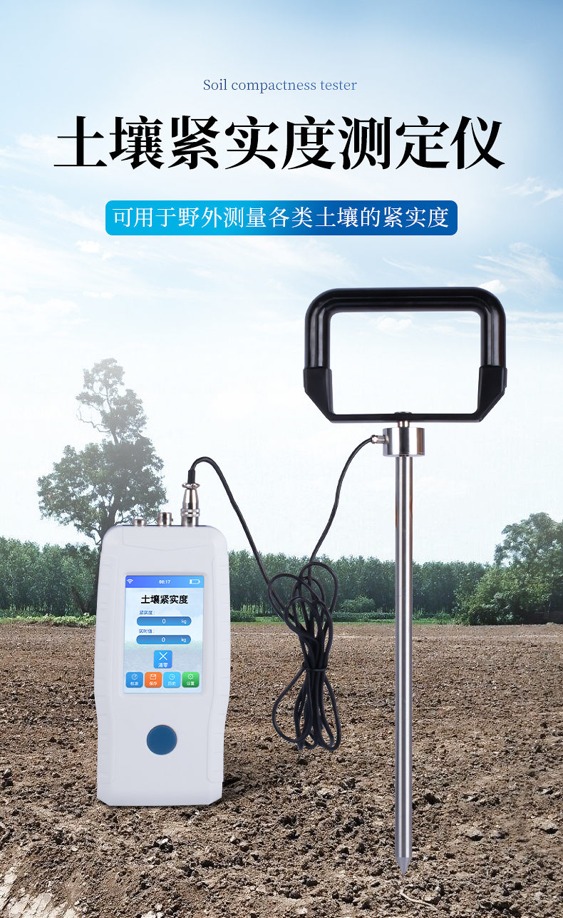 土壤緊實度由土壤抗剪力、壓縮力和摩擦力等構(gòu)成。是土壤強度的一個合成指標(biāo)。金屬柱塞或探針壓入土壤時分動載和靜載兩種方法,不同方法的測定值不同,但有聯(lián)系。柱塞的形狀有錐體、平頭、圓球及楔子等,這些對測定值也有影響。對同一種方法的測定值,主要決定于土壤質(zhì)地、容重和含水量。其中含水量的影響*大。土壤緊實度可預(yù)測土壤承載量、耕性和根系伸展的阻力。土壤緊實度的大小可影響作物根系的穿孔和生長,是一個重要的土壤物理特性指標(biāo),用于評價土壤耕性。緊實的土壤可阻止水分的入滲,降低化肥的利用率,影響植物根系生長,導(dǎo)致作物減產(chǎn)。