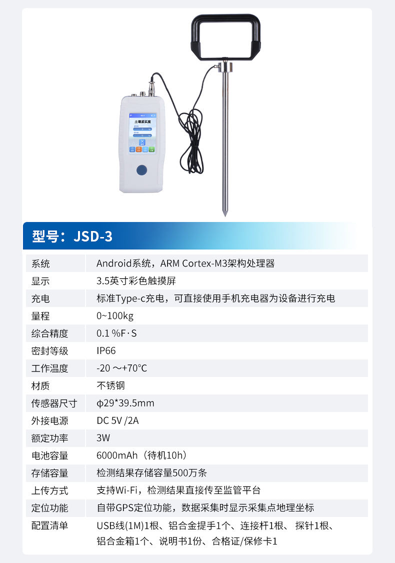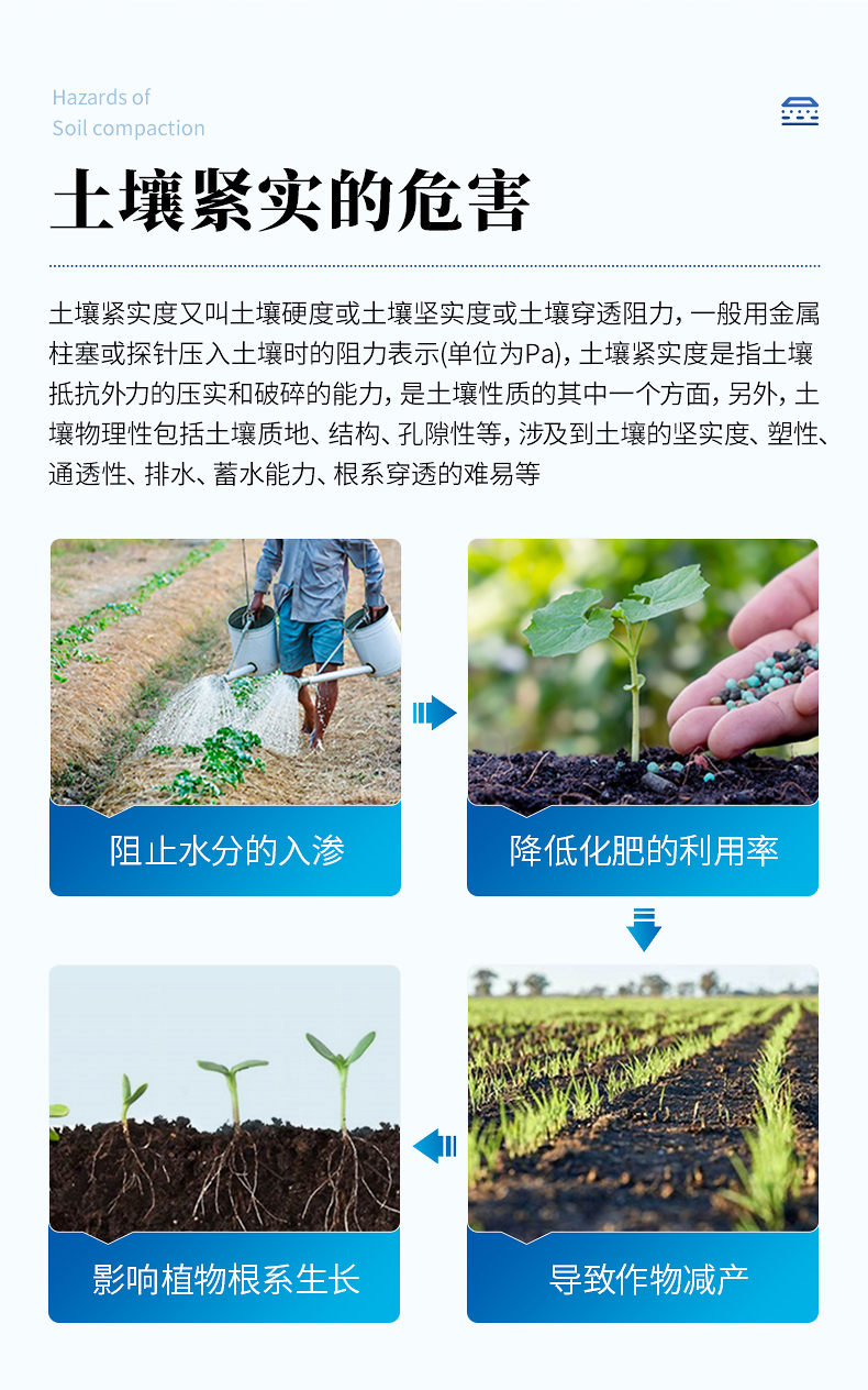 土壤緊實度又叫土壤硬度或土壤堅實度或土壤穿透阻力。一般用金屬柱塞或探針壓入土壤時的阻力表示(單位為Pa)。土壤緊實度是指土壤抵抗外力的壓實和破碎的能力,是土壤性質(zhì)的其中一個方面。另外,土壤物理性包括土壤質(zhì)地、結(jié)構(gòu)、孔隙性等,涉及到土壤的堅實度、塑性、通透性、排水、蓄水能力、根系穿透的難易等。
